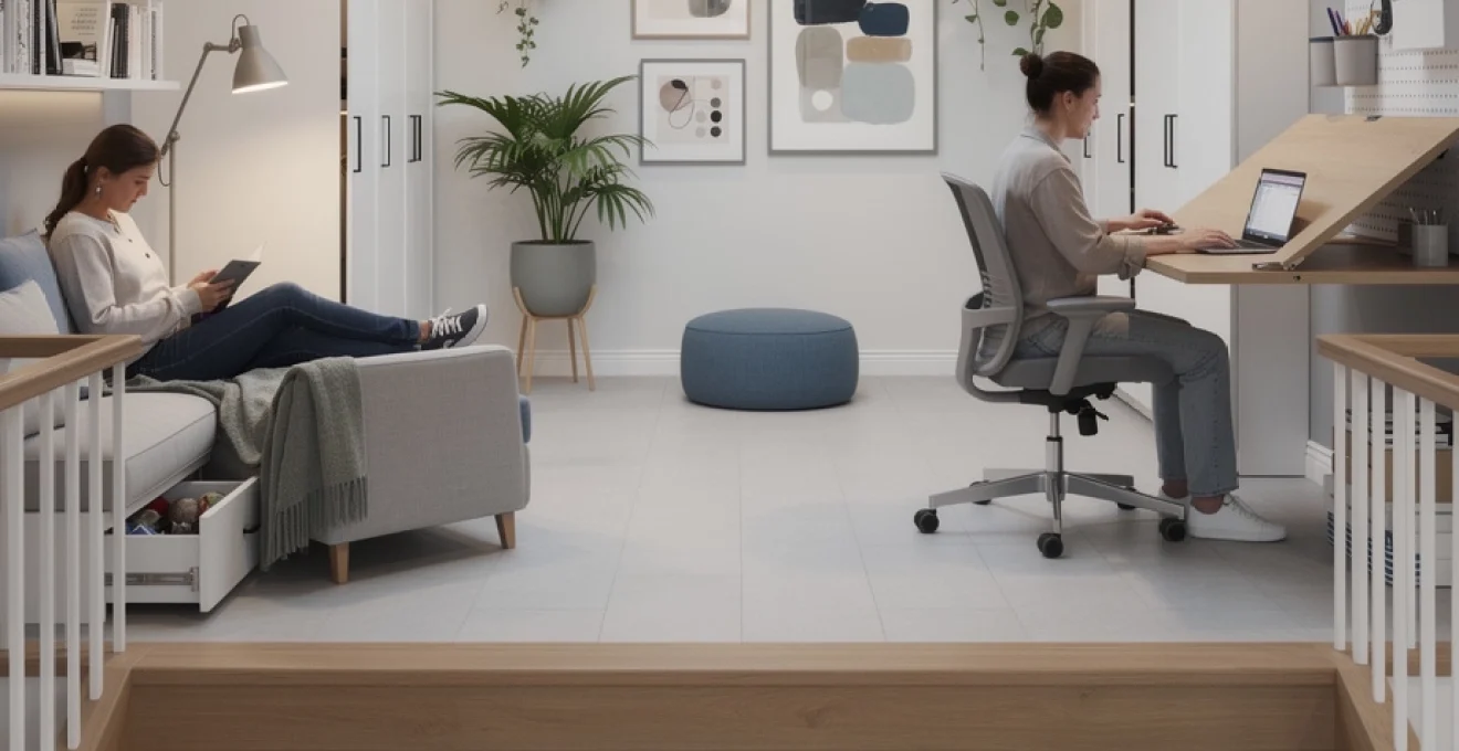 Lorsque l’espace au sol est vraiment compté, vous pouvez envisager une chaise sans accoudoirs, plus facile à glisser sous un bureau rabattable. L’important est de respecter une position de travail correcte : pieds à plat, genoux à environ 90°, avant-bras parallèles au plateau. Le plateau du bureau doit idéalement se situer à une hauteur comprise entre 70 et 75 centimètres, en fonction de votre taille. Un repose-pieds compact peut compléter l’installation si le sol se trouve trop bas par rapport à l’assise, en particulier dans les maisons anciennes aux planchers irréguliers.