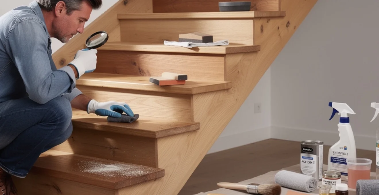 Traitement des escaliers huilés : dégraissage à l’acétone et préparation du support