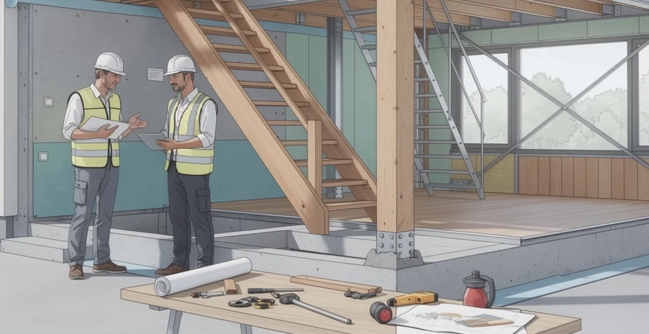 La phase de mise en œuvre est déterminante pour la sécurité et la durabilité de l’escalier dans une extension. Même avec un dimensionnement théorique irréprochable, une erreur d’ancrage ou un défaut d’alignement peut générer des désordres : fissurations, vibrations, grincements, voire affaissements localisés. Le chantier doit donc être géré de manière séquencée, en coordonnant maçon, métallier, charpentier et plaquiste afin que chaque étape s’articule correctement avec la suivante.