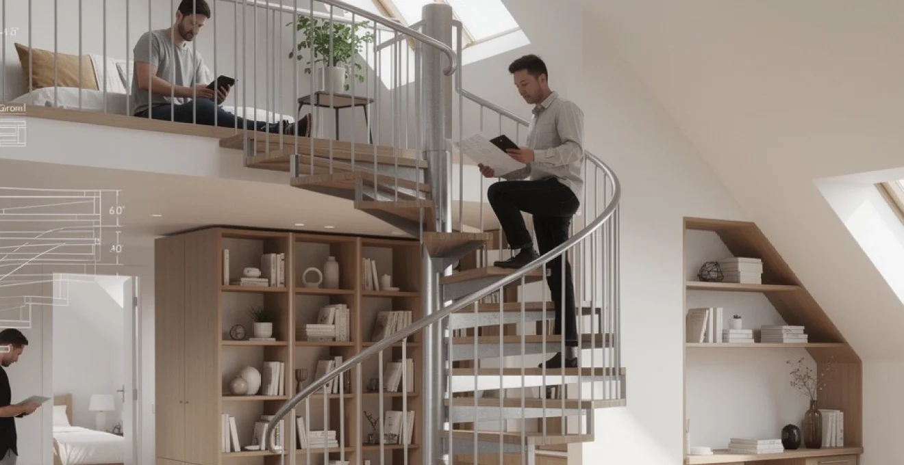 Au-delà des calculs, l’intérêt de l’escalier colimaçon pour optimiser l’espace se révèle pleinement lorsqu’on l’intègre intelligemment dans le plan d’ensemble. Utilisé comme un simple « tuyau vertical », il se contente de relier deux niveaux. Pensé comme un outil d’aménagement, il permet de structurer un studio, d’ouvrir une mezzanine ou de valoriser un angle perdu tout en libérant les zones de vie principales.