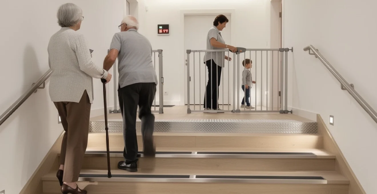 Lorsque des enfants en bas âge ou des animaux domestiques vivent dans le logement, l’escalier devient un point critique qui nécessite des protections spécifiques. Les barrières de sécurité et portillons d’escalier empêchent l’accès non surveillé aux marches, en particulier la nuit ou lors des moments d’inattention. Ils complètent les dispositifs précédemment évoqués (mains courantes, antidérapants, éclairage) pour constituer un ensemble cohérent de sécurité.